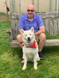 Thor was purchased as a baby on May 13, 2014, from a breeder. When Thor was around 3, he was kicked out of the house because he ate grandma's recliner. Thor lived outside with no cover, for over a year. Tonya Renee Robinson reached out to us and asked if we could take Thor into our Rescue. We said, "Yes!" Tonya drove from Shiloh, Ohio with Crystal Porter, to Emmaus, Pennsylvania, in one day and wanted nothing in return. Jerry, Thor's new dad, reached out to us within the first week that Thor was with the Rescue. When Jerry met Thor he knew instantly that this was the boy for him. The bond these two had, immediately, was beautiful. Thor now lives with Jerry, Sheri, and their cat, Kawaii. Kawaii and Thor are curious about each other, but that's about it. Thor is adopted and living the best life ever!